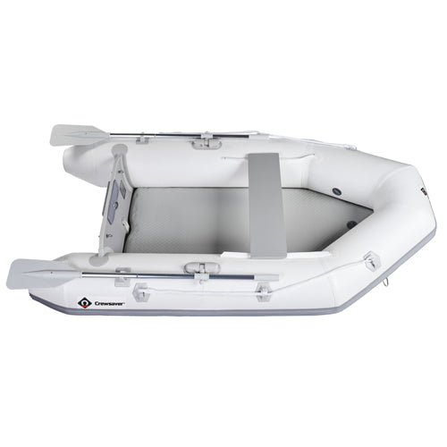 The Crewsaver range of Air Deck inflatable boats offers a range of affordable, high-quality tenders. Ideal for all-round use, whether you require a means of transport to your yacht or craft or looking for small boat options to get out on the water for some fun. The integral drop-stitched air deck offers rigidity for increased boat performance, with the added benefit of keeping boat weight to a minimum. It additionally provides added impact absorption properties. You can roll the boat up for transporting or keeping stowed in a locker. Securing your boat whilst on the water is simple. It can be fixed to stern davits using the integral davit eyes. When towing and lashing the boat down, you can secure the boat to the stainless-steel davit rings outside the bow. These boats are constructed using high-quality materials. The wide rubbing strake offers all-round protection during those moments when coming alongside. The solid transom accommodates a wide range of traditional and electric outboard engines, offering both a stylish and practical inflatable tender