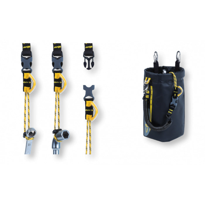 - An extendable spiral cord that attaches to the TOOL-BUCKET, GLASS BUCKET, LONG TOOL BUCKET, to the HERO PRO, SYNCRO and STYX harness, or the AIR-SIT work seat.