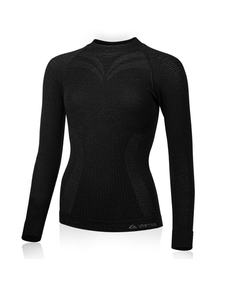 MATALA is a womens seamless super fine Merino Wool long sleeve shirt. It transports moisture away from the skin and natural 16-micron merino ensures perfect thermal comfort. Highly elastic material allows for easy dressing. In addition there are reinforced zones on the lower back to aid in thermal insulation of that area. Perfectly adapted Merino Wool yarn will never itch or scratch while encircling the body. Thanks to a unique processing it perfectly fits each figure. The raglan cut sleeves support comfortable wear. Because of the high content of 16--micron wool this garment feels unbelievably soft next to the skin. Material: 93% Merino wool, 7% nylon