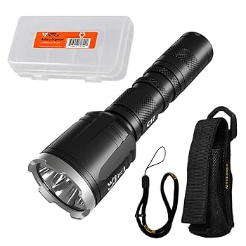 This dual output flashlight pushes an incredibly bright 2500 lumens of white light reaching over 300 yards.