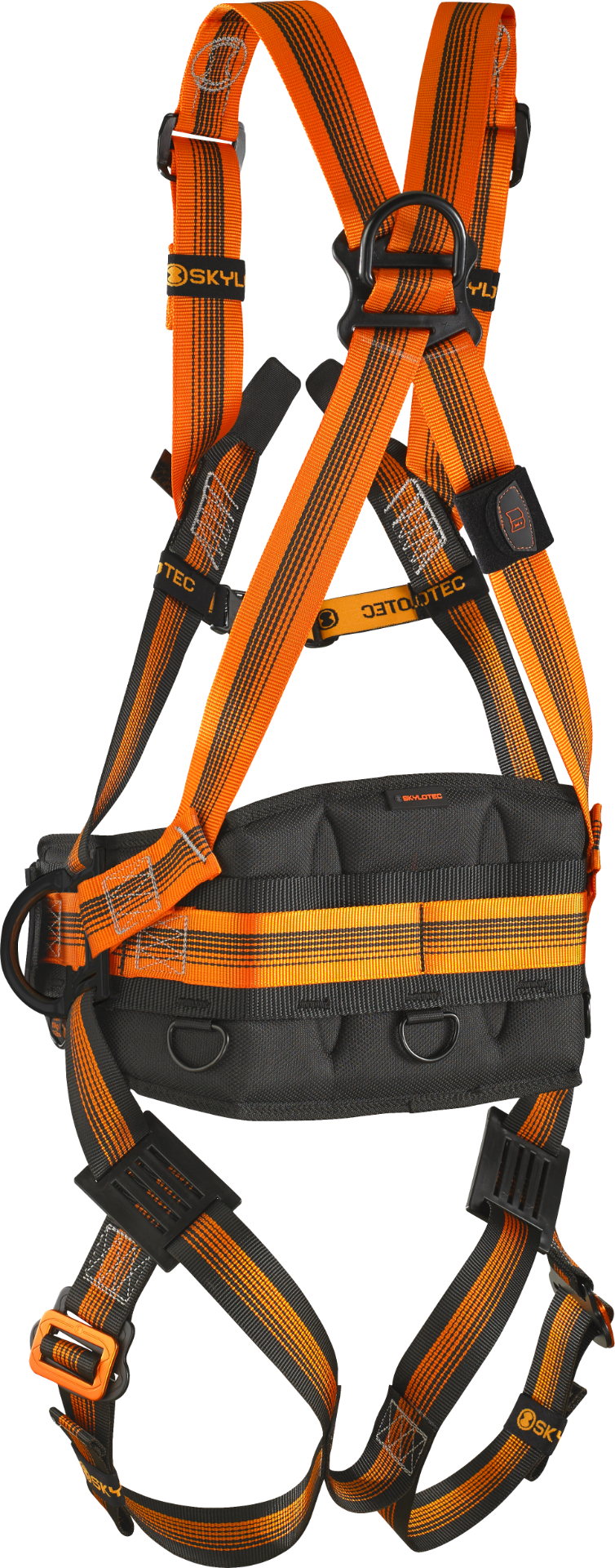 CORION is a very robust fall arrester and safety harness developed especially for working at heights in corrosion protection. Its special construction with a wide waist belt and adjustable double buckle clasp makes it easy and quick to adjust for any user. Thanks to tried-and-tested harness adjusters from the IGNITE series, the harness can be adjusted safely and easily. The new adjusters also prevent the harness from becoming loose when working. The two fabric belay loops in the chest area and D eyelet in the shoulder area are to be used together as fall-arrest attachment points in accordance with EN 361. The lateral retaining eyelets are only to be used for workplace positioning. They are extremely rigid so they can also carry heaving loads such as buckets and tools for long periods of time.