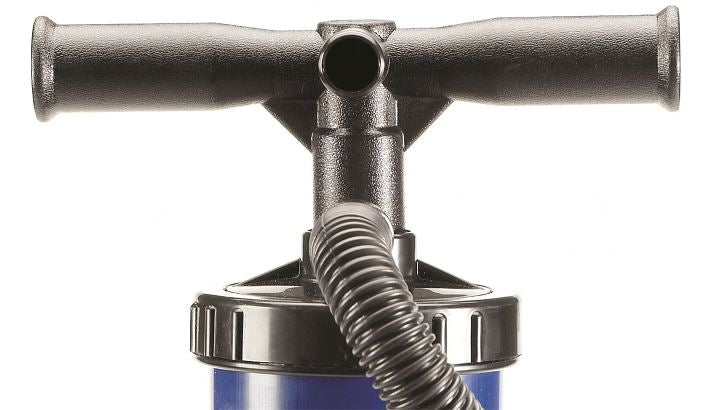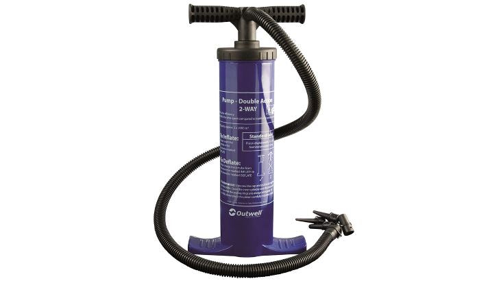 Inflates and deflates with twice the pumping power! This double action manual pump quickly inflates or deflates air tents, airbeds or inflatable camping furniture. It’s two times more effective than a regular pump, which means less work for you. Comes with 3 nozzles to fit most inflatables and a 2l capacity.