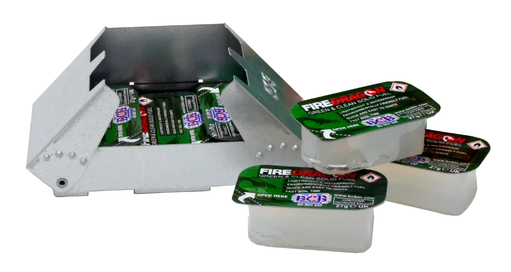 It can store 3 FireDragon solid blocks inside the folded closed stove. This compact folding cooker is ideal for carrying and storing.**