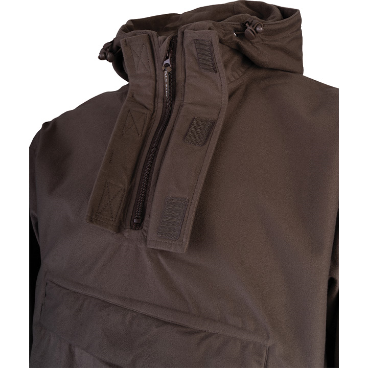 They have wide spread use among hunters, beaters, bushcraft amateurs and anyone who values a comfortable and weatherproof garment. To ensure it is waterproof up to 10.000mm we used a 100% polyester brushed tricot with laminated membrane, which with addition of the full sized hood, adjustable wrist bands and an adjustable cord around the waist, makes this smock a great choice for any outdoor pursuits.