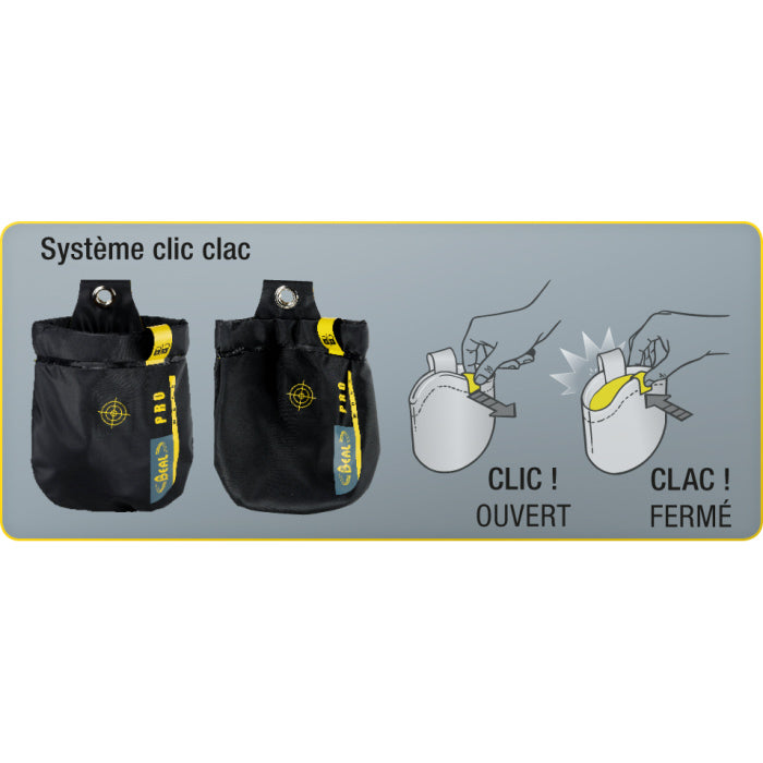 The clic clac express closure stops the pocket contents getting lost. A magnetic plate allows temporary storage on the outside of the pocket.