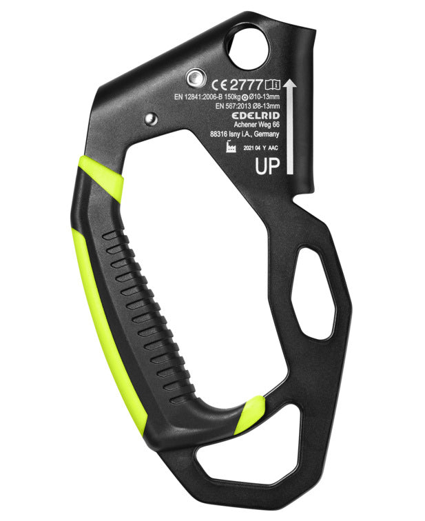 - The upper part of the ascender can be grasped with the other hand for two-handed ascents