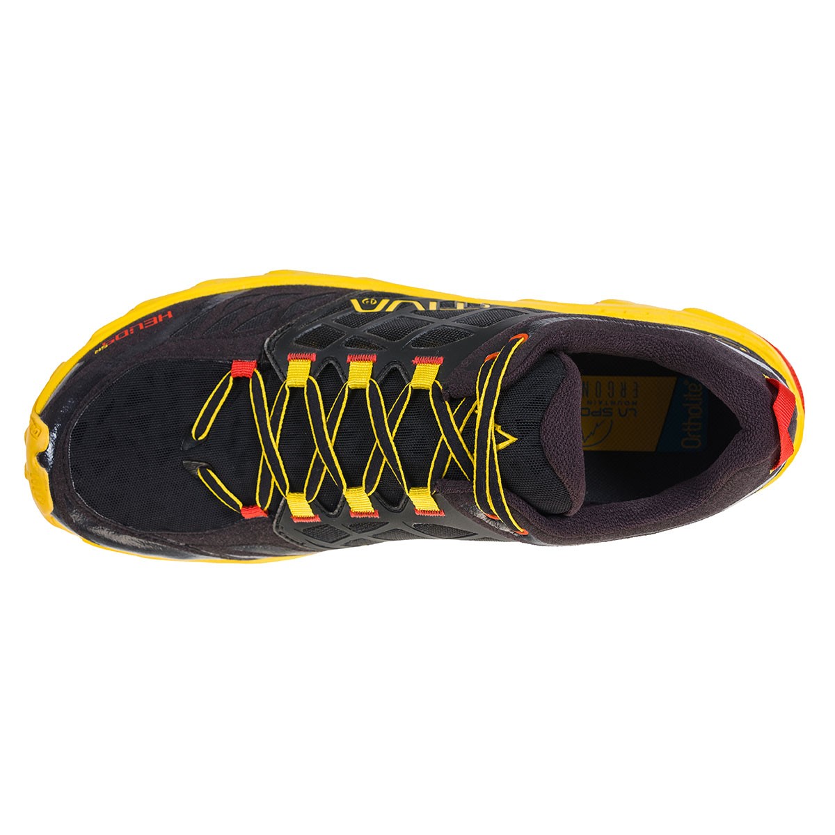 Every detail has been thought to keep weight at a minimum without compromising the structural and protective features fundamental for racing. The structure of the uppers is created using a lightweight, high frequency frame with a soft, breathable and comfortable EVA net. Maximum care and attention has been given to flexibility, to promote natural foot movement without constricting the front flex zones. Helios SR uses a snug fitting Slip-on construction upper for ease of use. The injected midsole with Morpho Dynamic technology works in synergy with the FriXion XT dual density sole, to provide optimal shock absorption. Features such as the reflective inserts, the reinforcement zones on the toe and heel in micro fibre and the internal protective silk screening, have been created to satisfy the most demanding off-road runners. Helios SR takes minimalism to the racetracks.