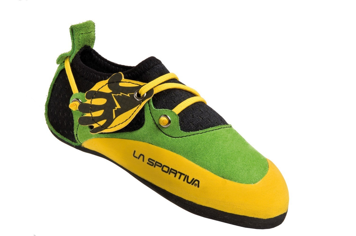 A climbing shoe designed for younger climbers: comfortable, snug fit and extremely easy to pull on thanks to the new velcro lacing system. The innovative closure system guarantees a custom fit and offers tension regulation for the young, growing foot. This system allows you to use the same shoe even as the foot grows into the next size range thus making this model truly "long life". Boot features include a FriXion RS sole, rubber toe rand, unlined for an even snugger fit and an integrated breathable gaiter.