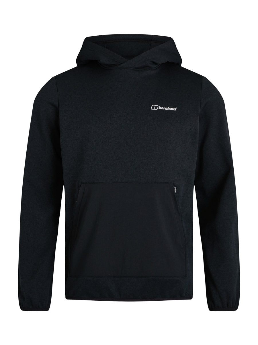 Laidback style done to a tee, this casual everyday hoody is comfort in every sense. In deceptively warm knit fleece, it has a generous hood featuring our logo print at the back. Hands stay out of the cold snap tucked away in the zipped kangaroo pocket. The stretch bound cuffs and hem add a nice high quality touch, finished off with a Berghaus logo at the chest. A great choice for winter.