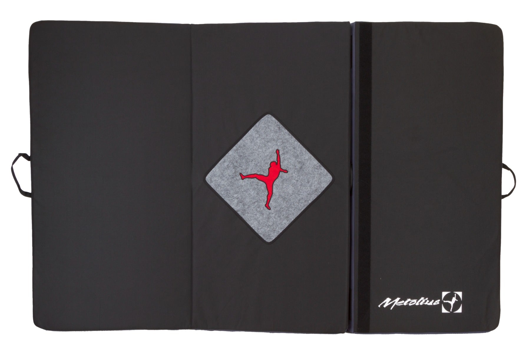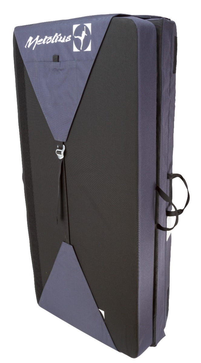 A massive 4' x 6' (1.2 m x 1.8 m), in an easy-carrying, tri-fold design. Sandwich foam design for maximum impact absorption: 1" (25 mm) closed-cell, top layer, 2.5" (60 mm) open-cell center, and ½" (15 mm) closed-cell, base layer. 900d body fabric for maximum durability and cross-clipper logo rug for cleaning shoes. Angle cut hinges eliminate the gutter found in other designs, and a small external stash pocket and larger inner pocket provide a place to store shoes, chalk bag, etc. Closure flap reverses to cover shoulder straps while bouldering. Plush padded shoulder straps and dual sets of drag handles give you lots of carrying options. Aluminum buckles are guaranteed for life. The Magnum also makes an awesome crag bed for car camping!