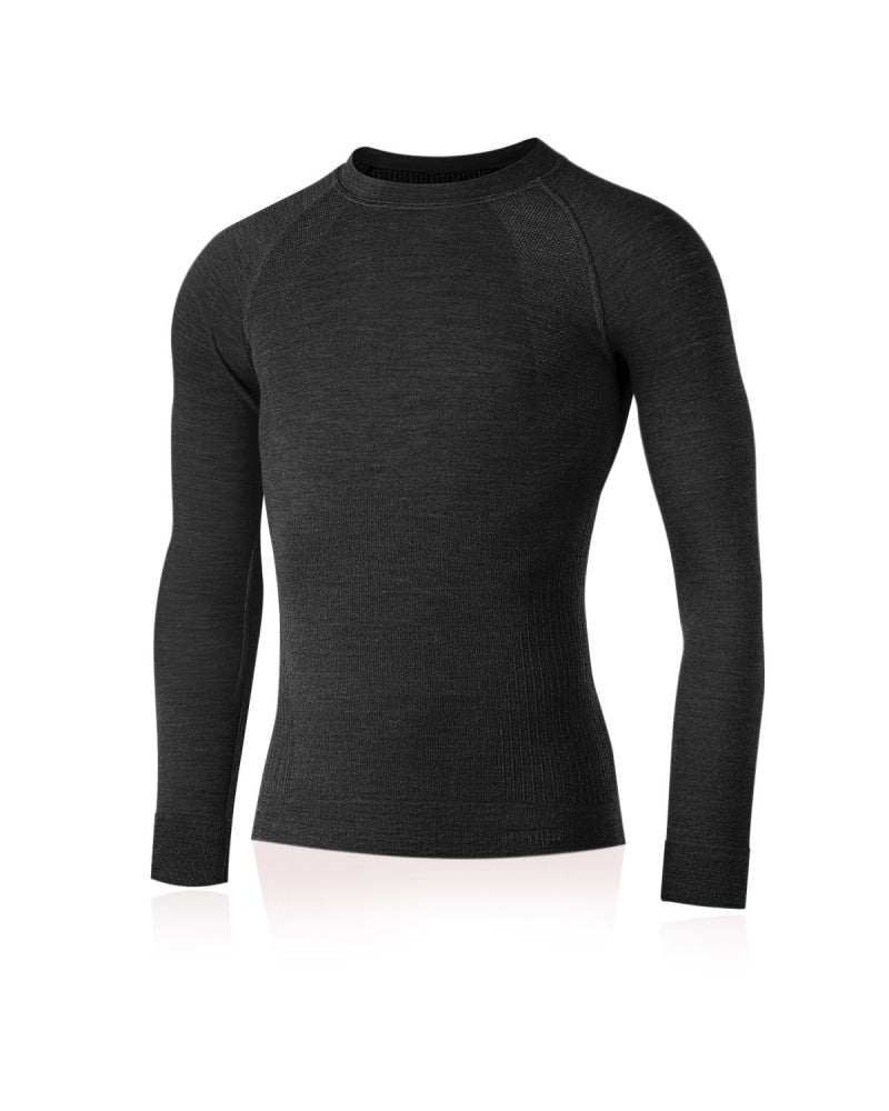 MAPOL is a seamless super fine Merino Wool long sleeve shirt. It transports moisture away from the skin and natural 16-micron merino ensures perfect thermal comfort. Highly elastic material allows for easy dressing. In addition there are reinforced zones on the lower back to aid in thermal insulation of that area. Perfectly adapted Merino Wool yarn will never itch or scratch while encircling the body. Thanks to a unique processing it perfectly fits each figure. The raglan cut sleeves support comfortable wear. Because of the high content of 16--micron wool this garment feels unbelievably soft next to the skin. Material: 93% Merino wool, 7% nylon