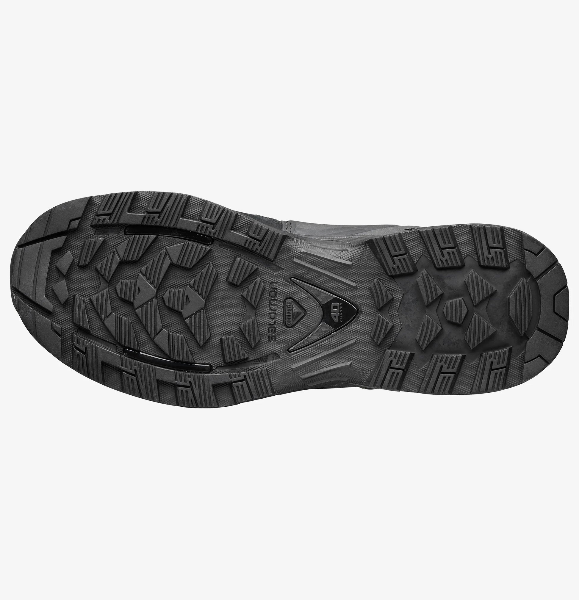 Salomon's non-marking Contagrip® soles have a reverse chevron pattern that grips on wet, loose, hard or dry surfaces.
