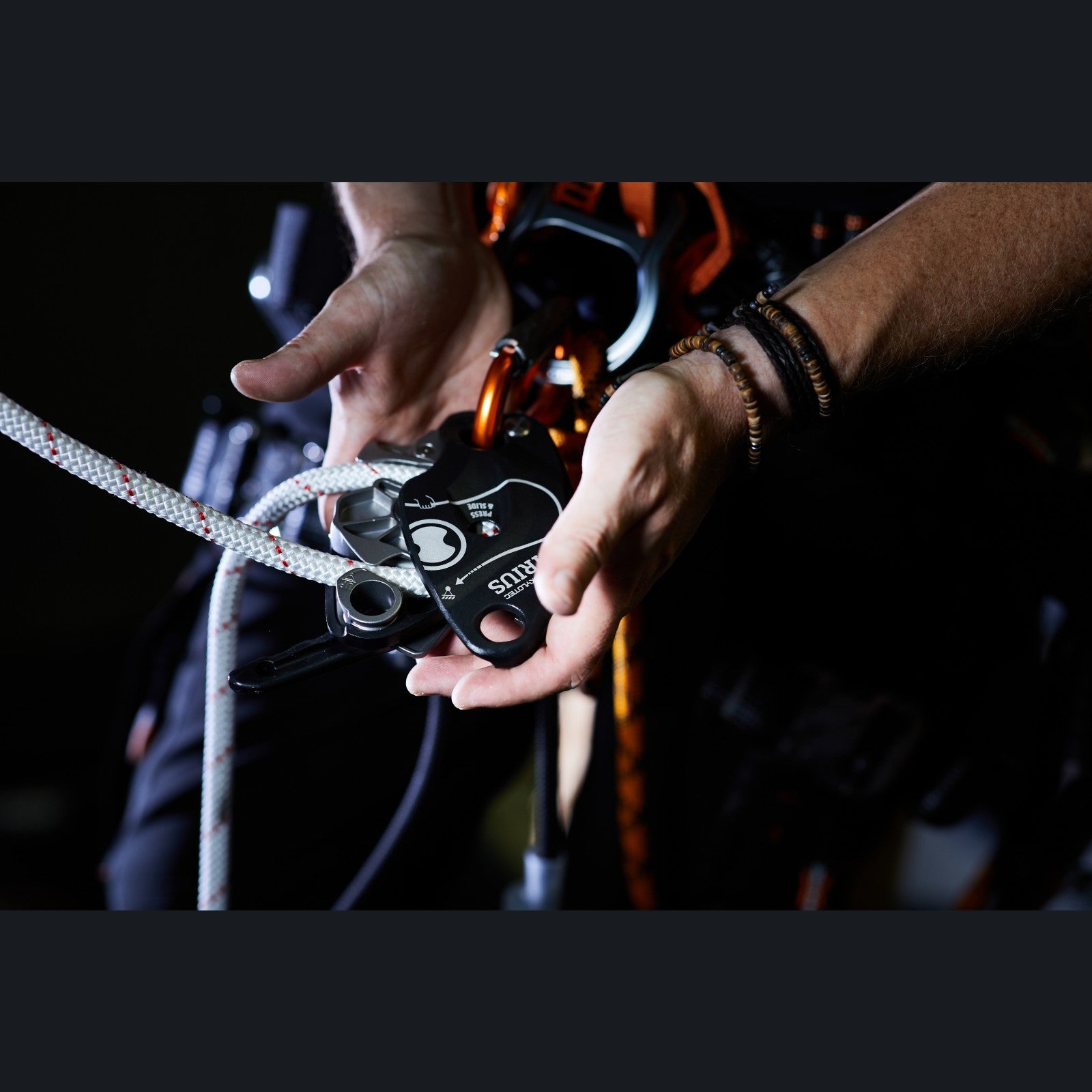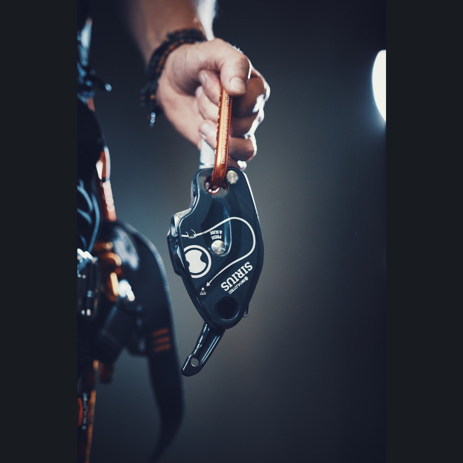 SIRIUS packs the advantages of the best descenders for industrial and rescue applications into an extremely compact design - for better handling and long service life. SIRIUS lies perfectly in your hand. The auto-returning operating lever has a particularly small radius of motion so that you can work fast, accurately, more comfortably and safely. During rope insertion, which is intuitive and simple, the carabiner on the harness can stay connected to the device. We designed the route of the rope in such a way that it is protected from twisting and kinking, and from excessive wear and tear. SIRIUS was developed for extended use under the toughest of conditions. That’s why it is made of up to 100 % metal - without any vulnerable synthetic spots. SIRIUS. Best ergonomics and long service life in its most compact form:
