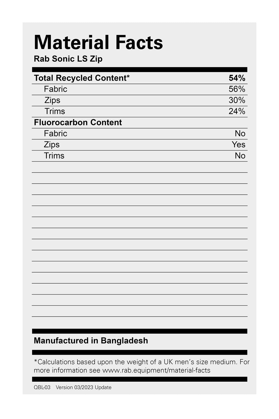 The Sonic LS Zip is an efficient, long sleeve layer, ideal for mountain running and fast hiking. Designed with a relaxed, regular fit, comfortable Raglan sleeves, and lightweight, breathable fabric, finished with an odour control treatment. Offering you a layer of protection on cooler days when a tee won’t cut it, or hotter days when covering up from the sun is key, it’s ideal for multi-day adventures.
