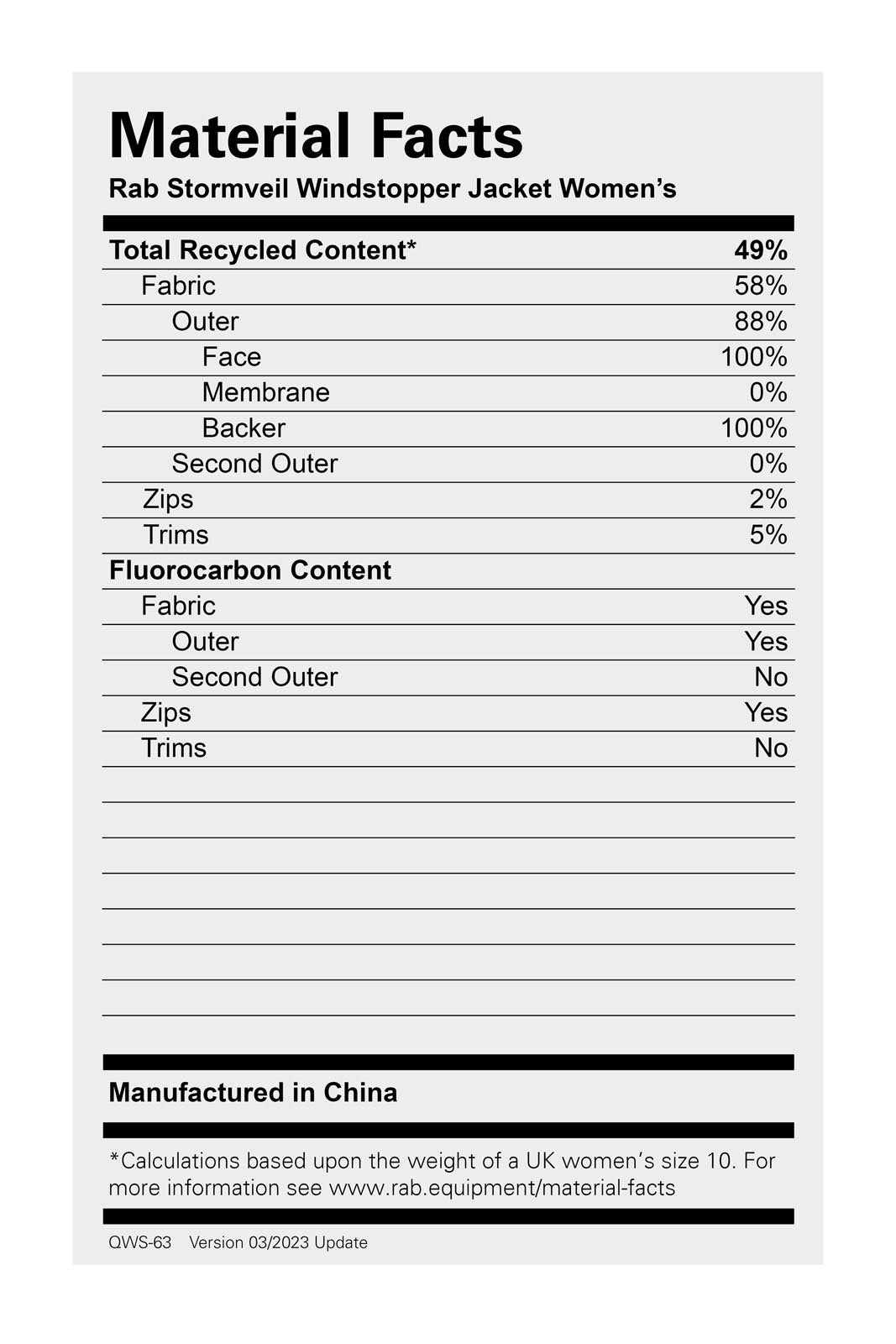 - Centre back length (Size 10): 65cm / 25.5inch