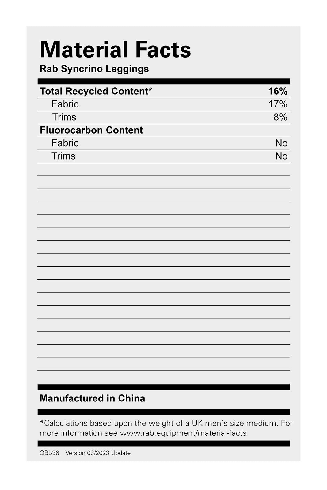 Our lightweight Syncrino™ 125 fabric is made from a blend of Merino wool and 32% recycled synthetic fibres. Merino wool is ideal for cold weather baselayers. It’s ability to absorb water makes it excellent at wicking sweat away from the skin, maintaining comfort, and regulating body temperature. It’s also a great insulator, even when it’s wet, although it can take a while to dry.