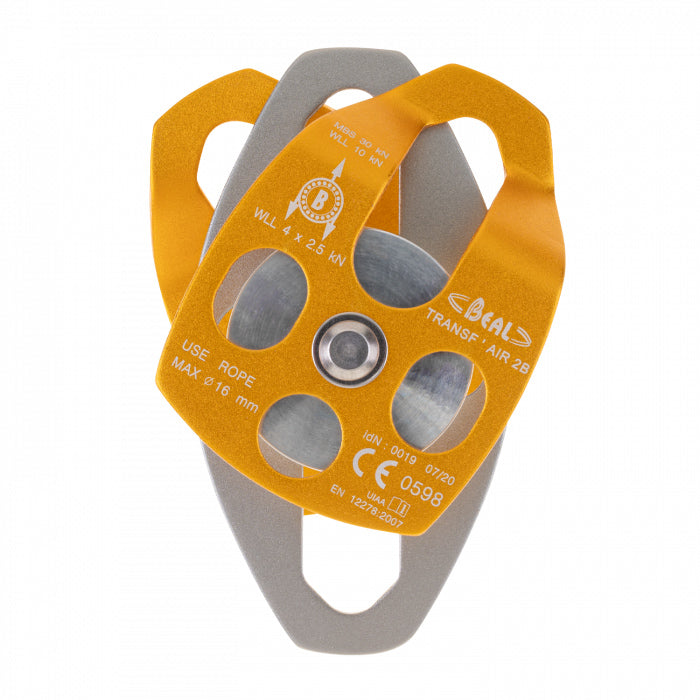 Its swivelling action allows the pulley to be positioned anywhere along the rope, whilst the ball bearings ensure maximum efficiency and durability. Ideal for intensive use with large ropes diameters. Stainless steel axle and washers.