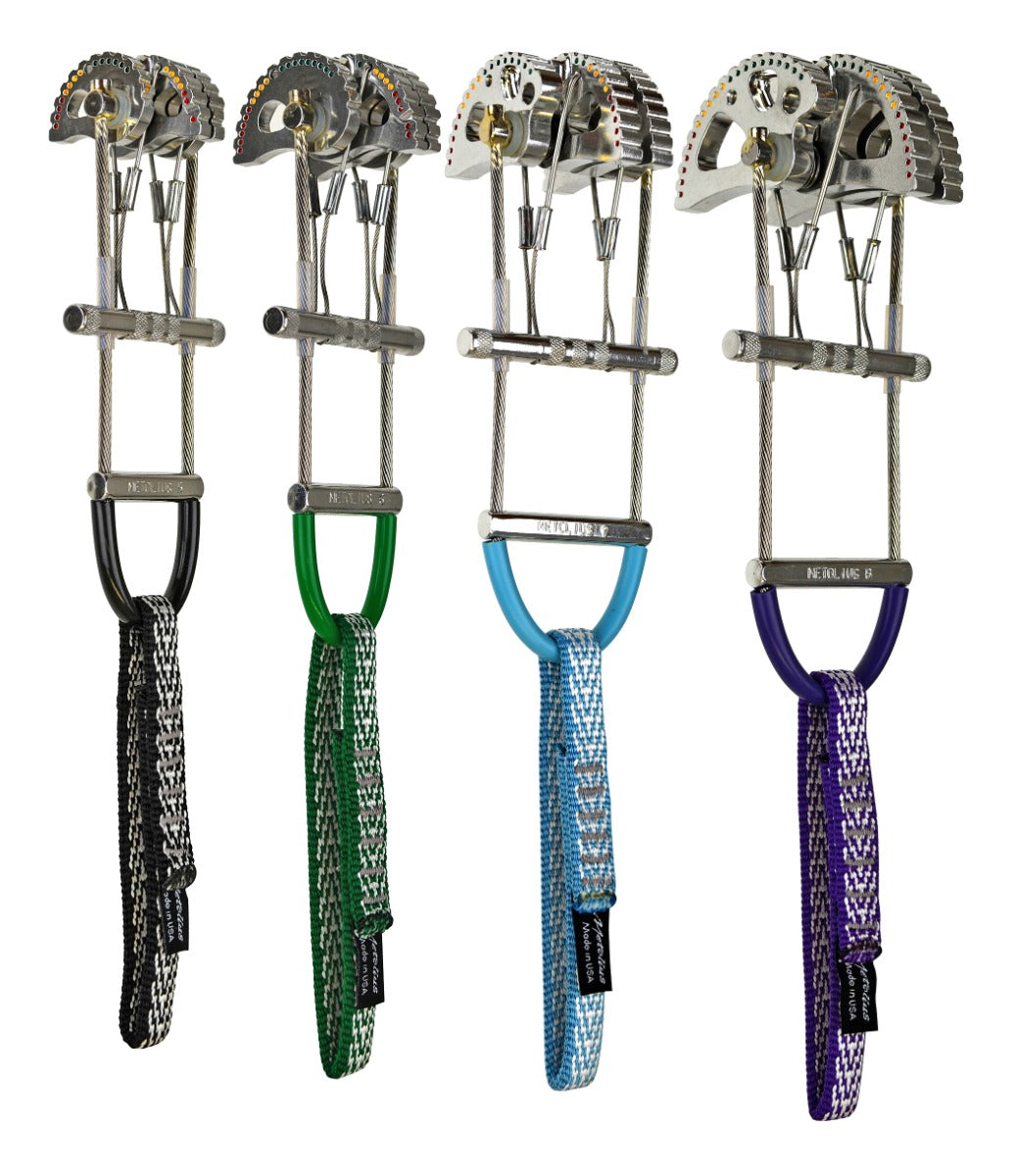 Ultralight Power Cams are the lightest 4-cam units in the world! Direct Axle Technology allows for more placement options in shallow, narrow, or bottoming placements, and makes tricky placements easier due to better cam lobe visibility. Range Finder tells you at a glance if you've chosen the right size cam for the placement. Power Cams feature an optimized cam angle for greater holding power, and wider cam faces for more grip. The U-shaped body provides greater durability and unparalleled control during placement and retraction. CNC machined for much greater precision than stamped or extruded cams.