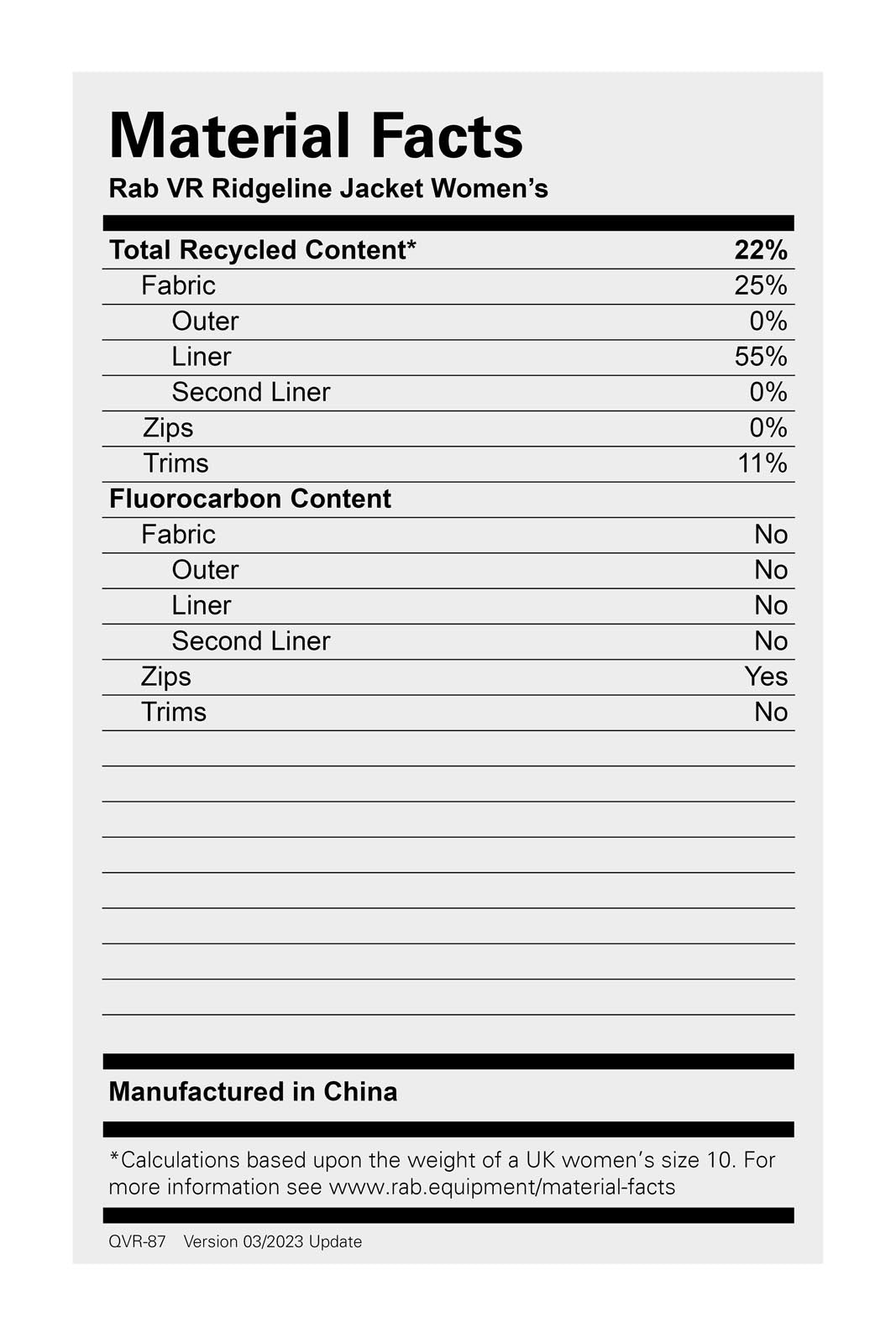 Expertly balancing wind resistance, moisture management and breathability, the VR Ridgeline Jacket takes the all-day temperature regulation and protection of our best-selling Vapour-Rise™ system and refines it for mountain running in the coldest months. Ultralight for complete mobility, yet protective against biting winds and damp, misty weather, it features a body-mapped lining which effectively wicks away moisture to keep you comfortable as you press on with the ascent.