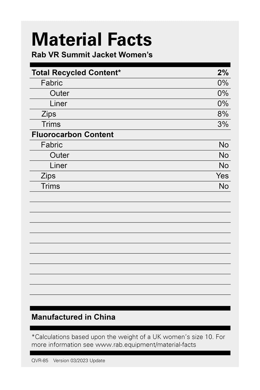 - Main Fabric:20D Pertex® Quantum Air with fluorocarbon-free DWR (47gsm [2cfm])
