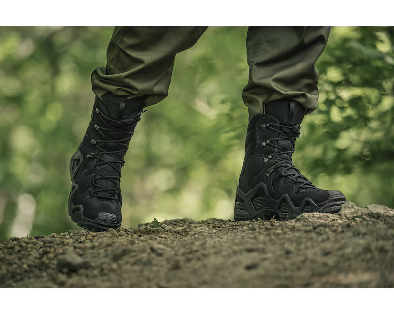 The ZEPHYR MK2 GTX HI is a combat boot with an ideal compromise between agility, lightness and stability. The raised HI-CUT shaft provides the necessary support for skydiving and fast-roping missions. The upper materials used consist of a combination of water-repellent and tear-resistant suede and abrasion-resistant and breathable CORDURA® material. An innovative clamping hook allows the lacing to be customised in the forefoot and ankle area. The waterproof and highly breathable GORE-TEX-PROFESSIONAL laminate is ideal for use in temperate and rather wet environments. The 2-layer PU midsole with MONOWRAP® frame surrounds and supports the foot like a kind of exoskeleton.